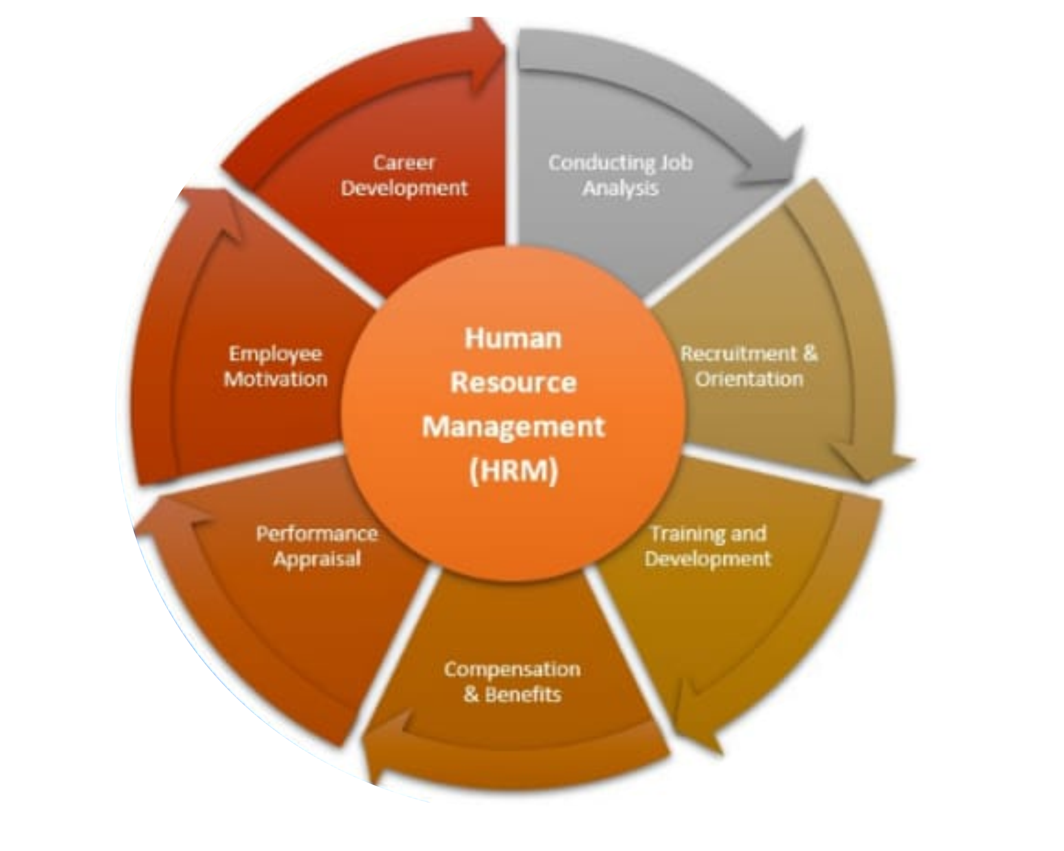 Recruit candidates, Trining, Hire the right employees, Process payroll, Conduct disciplinary actions, Update policies, Maintain employee records, Conduct benefit analysis